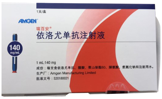 依洛尤单抗是一种针对PCSK9的人单克隆免疫球蛋白G2(IgG2)。PCSK9是肝脏合成的分泌型丝氨酸蛋白酶,可与低密度脂蛋白受体(LDLR)结合并使其降解,从而减少LDLR对血清LDL-C的消除。依洛尤单抗与PCSK9结合,抑制循环中的PCSK9与LDLR结合,从而阻止PCSK9介导的LDLR降解,使得LDLR可重新循环至肝细胞表面,导致能够清除血液中低密度脂蛋白的LDLR的数量增加,从而降低LDL-C水平。