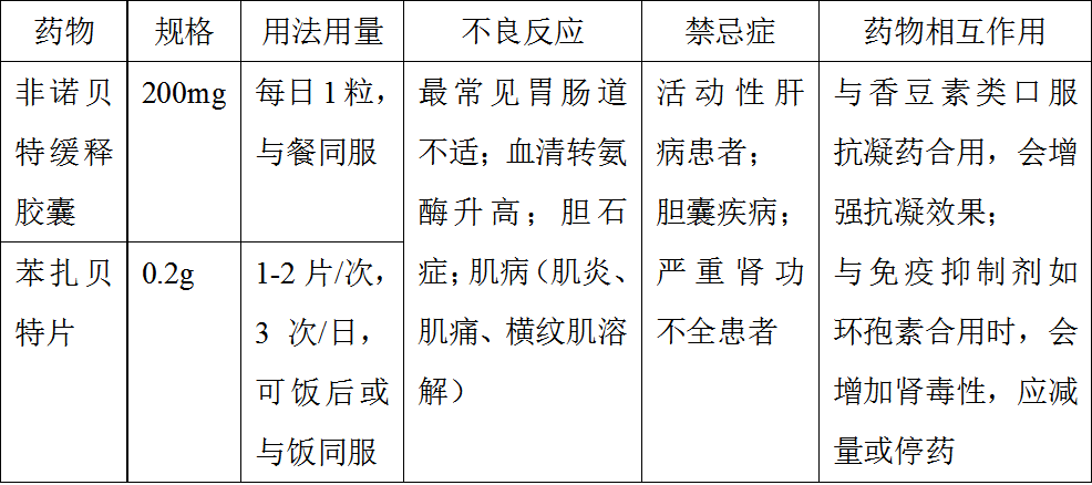 注:表格中的他汀均指中等强度他汀类药物:阿托伐他汀10-20mg,瑞舒伐他汀5-10mg,氟伐他汀80mg,洛伐他汀40mg,匹伐他汀1-4mg,普伐他汀40mg,辛伐他汀20-40mg,血脂康1.2g