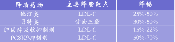 降脂药物的联合应用是血脂异常干预策略的基本趋势,主要目的是提高血脂达标率,进一步降低动脉粥样硬化性心血管疾病风险,减少降脂药物的不良反应率。