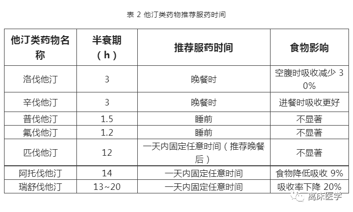 半衰期较短的他汀类药物建议在临睡前服用,而半衰期较长的他汀类药物在相对固定的任意时间服用均可。