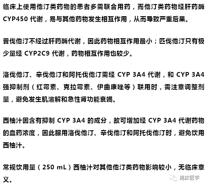除普伐他汀外,其余他汀类药物均从肝脏代谢,可引起肝脏转氨酶升高,但肝功能受损的发生率只有 0.2%-2%。当转氨酶升高大于正常值上限 3 倍以上时,应减少剂量或停药。