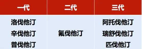 洛伐他汀、辛伐他汀和普伐他汀。洛伐他汀、辛伐他汀两者性质类似,降脂强度为中效,辛伐他汀更为常用。普伐他汀为中效他汀。