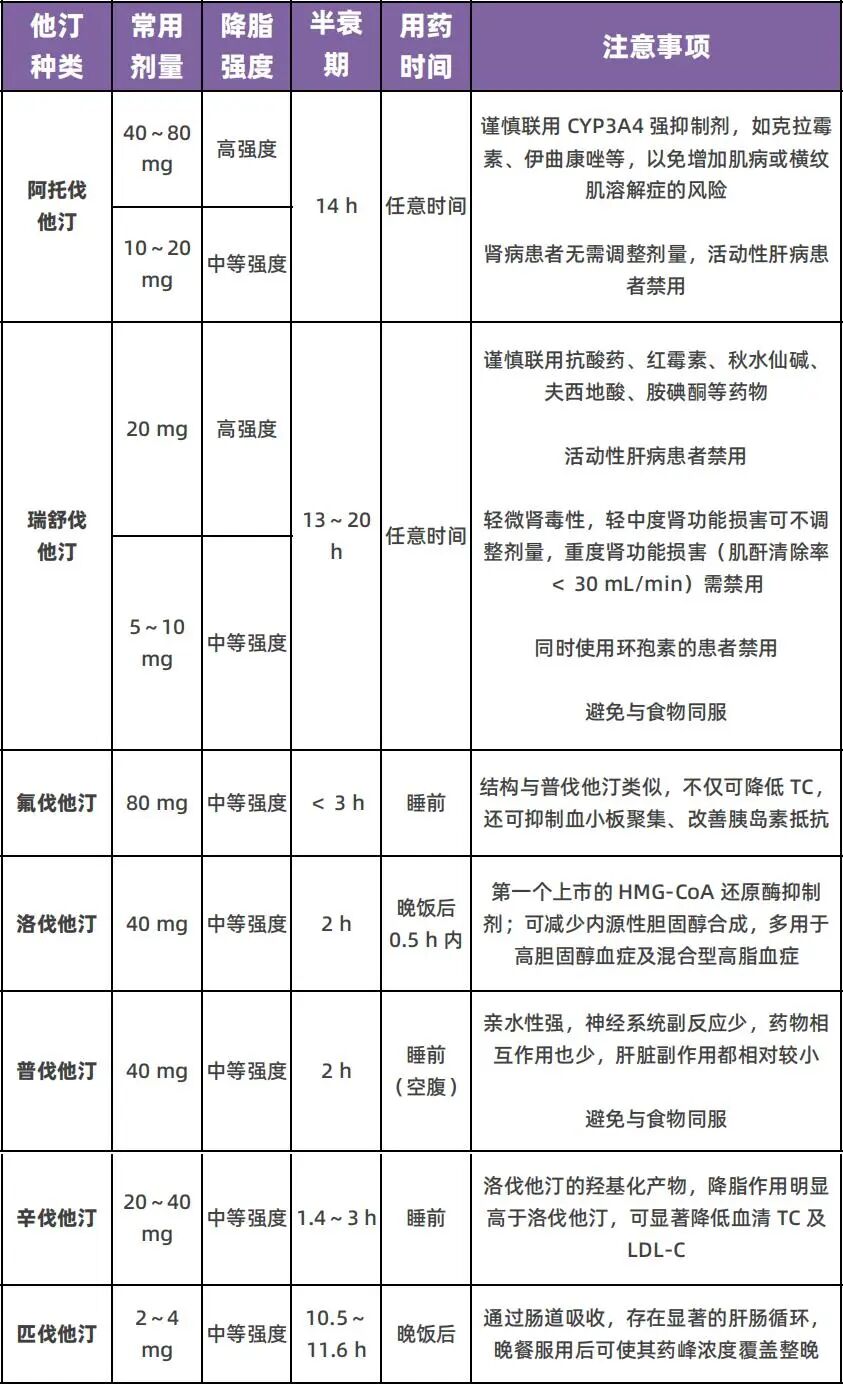 药师说药②|7种常用他汀类药物的区别