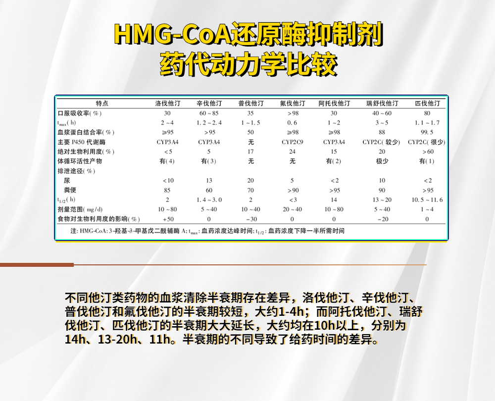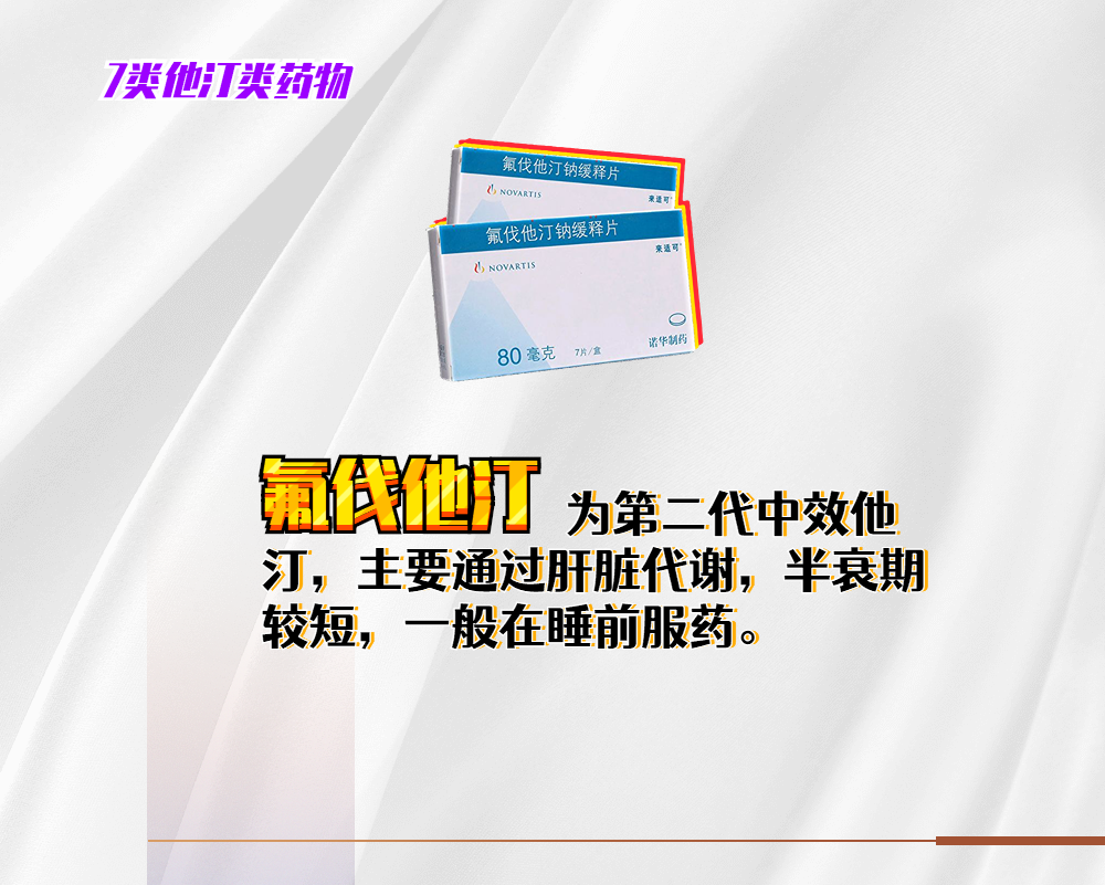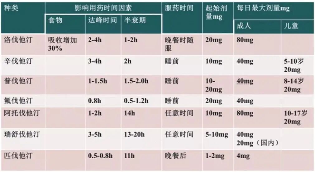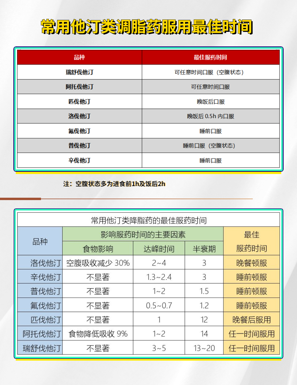 氟伐他汀、普伐他汀、辛伐他汀:由于其半衰期<3h,主要是通过抑制胆固醇高峰时间的合成发挥降血脂作用,须睡前服用;