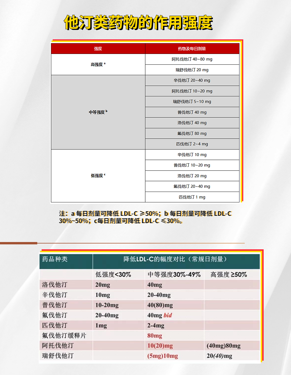 2、在临床ASCVD患者中,尽可能使用最大耐受他汀类药物将LDL-C降低幅度≥50%;