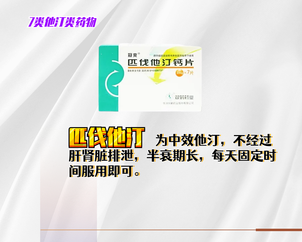 匹伐他汀:其半衰期约11h,可能与部分药物存在肠肝循环有关,一般晚饭后服用;