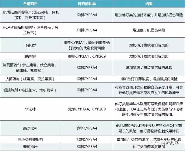 他汀类与肝药酶抑制剂的相互作用机制及结果