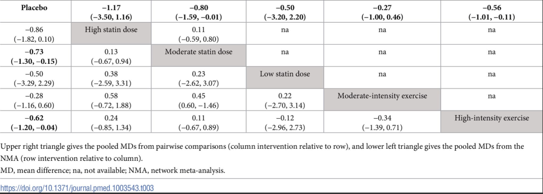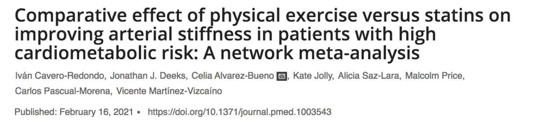 Iván Cavero-Redondo et al.Comparative effect of physical exercise versus statins on improving arterial stiffness in patients with high cardiometabolic risk: A network meta-analysis.PLoS Med. 2021 Feb 16;18(2):e1003543. doi: 10.1371/journal.pmed.1003543