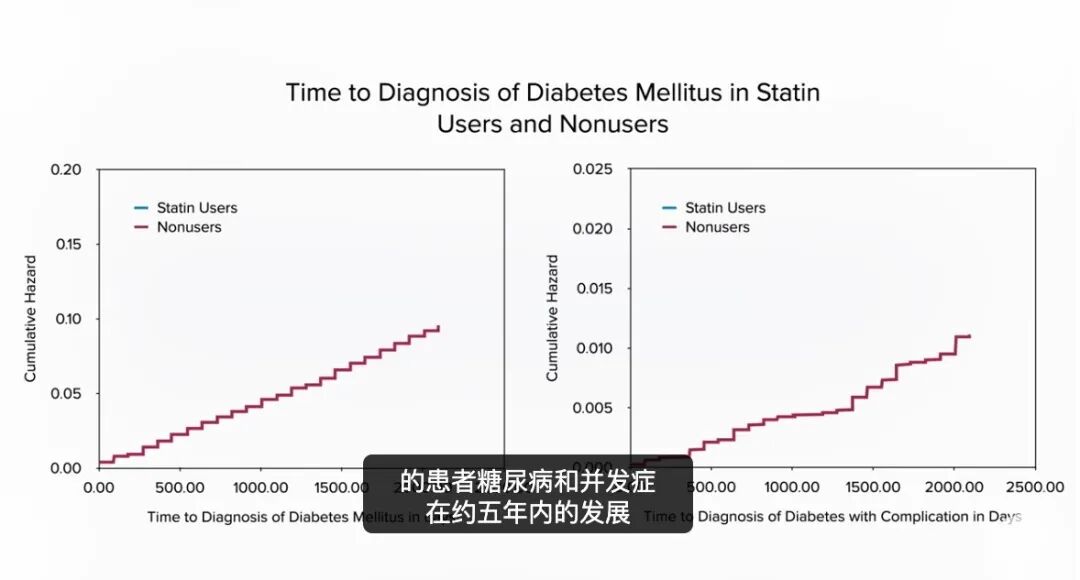这是图表:没有服用他汀类药物的患者,其糖尿病和并发症在约五年内的发展。