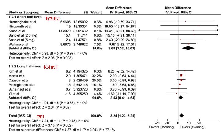 ❖早上还是晚上服药对低密度脂蛋白胆固醇的影响(含亚组分析)