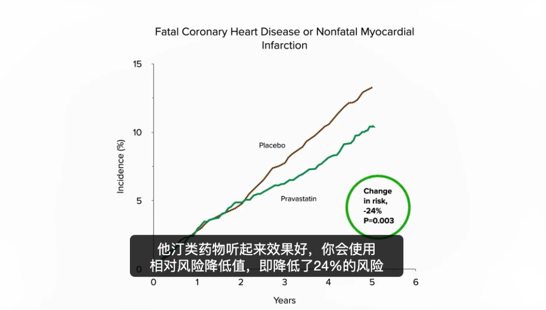 如果你想让他汀类药物听起来效果好,你会使用相对风险降低值,即降低了24%的风险。