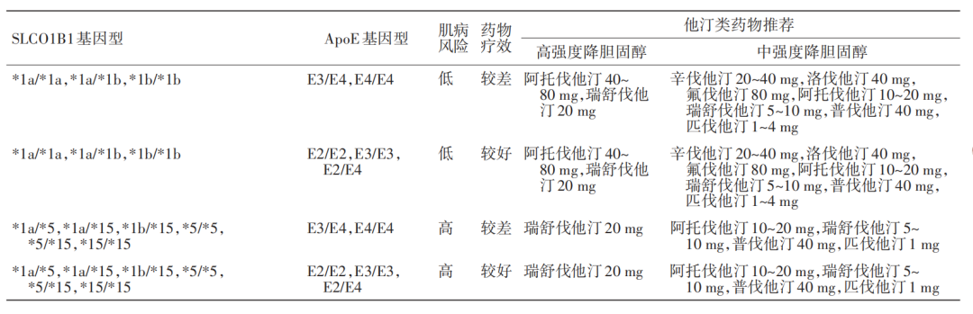 用药前检测 SLCO1B1及 ApoE 基因多态性,将有助于实现他汀类药物的精准用药,提高调脂疗效,减少或避免药物不良反应的发生。