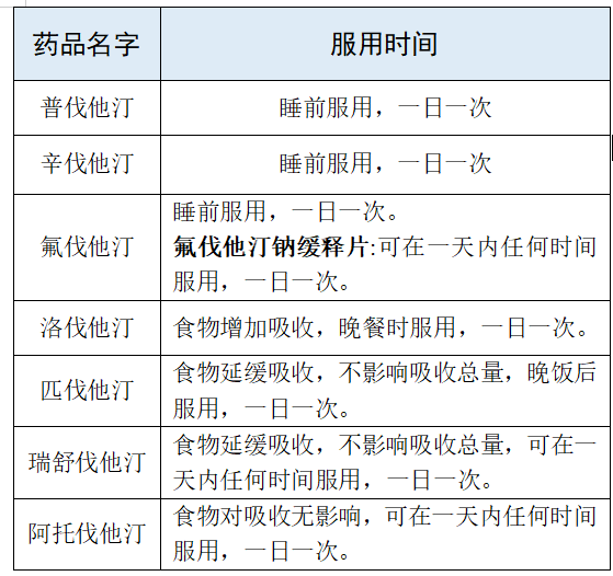 (1)阿托伐他汀、瑞舒伐他汀的半衰期长,可任意时间服用。