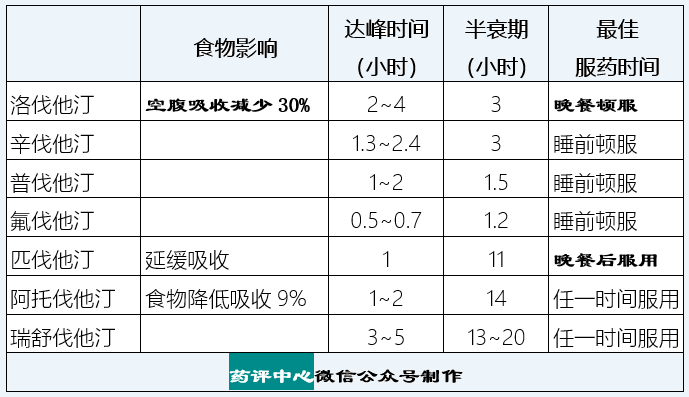 匹伐他汀:半衰较长,可在晚餐后服用。
