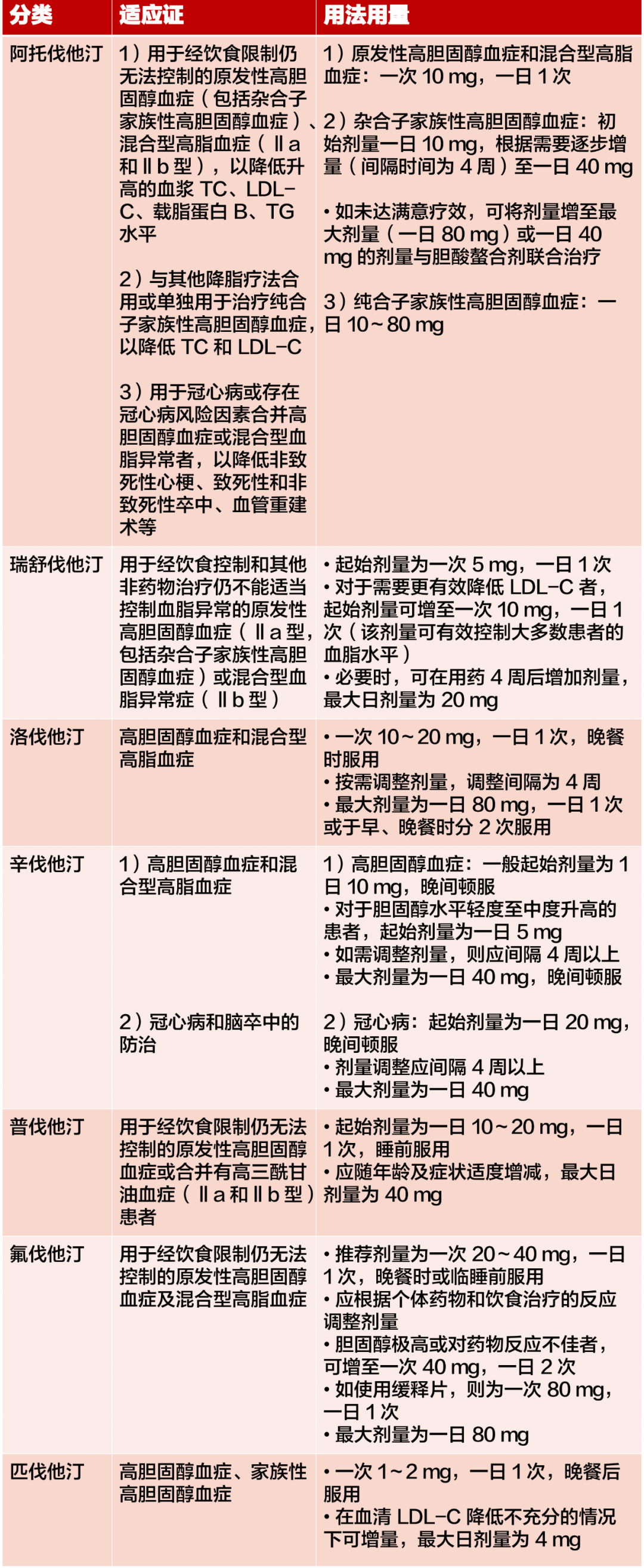 在降低胆固醇和 LDL-C 方面,最初辛伐他汀最强,普伐他汀次之,氟伐他汀最弱;之后随着阿托伐他汀和瑞舒伐他汀的问世,其降脂疗效显示明显的优势。
