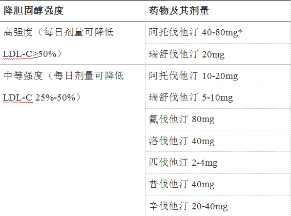 注:阿托伐他汀80mg国人经验不足,请谨慎使用。