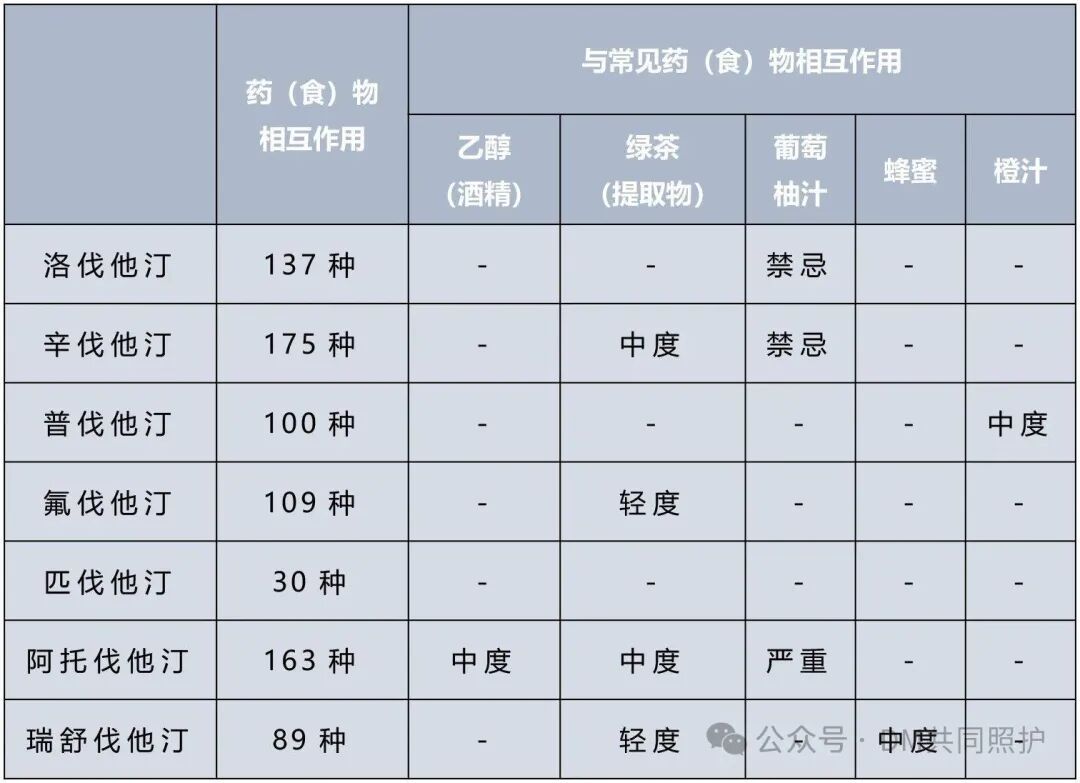 他汀与常见食物作用