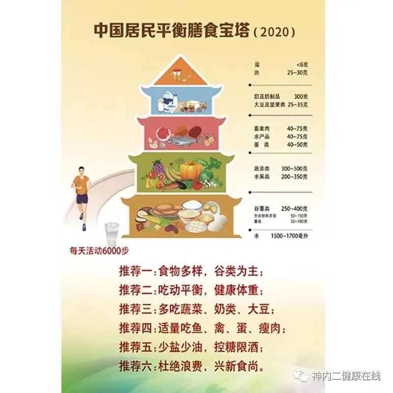 饮食控制:多吃新鲜蔬菜、水果、粗粮等,多吃豆制品,多吃不饱和脂肪酸(鱼类、植物油等),少吃肥肉、动物内脏等高脂肪类食物,每日应控制总热量、少吃多餐,达到或维持合适体重,每日食盐摄入量应小于6克。