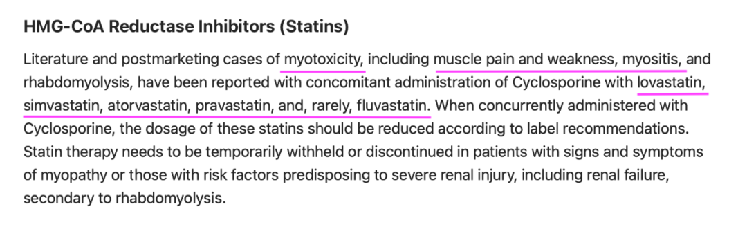 尽管说明书不推荐环孢素与他汀联用,但当使用环孢素的患者需要进行降脂治疗时,我们可以选择相对影响较小的他汀。