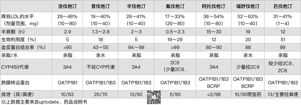 小编总结了各个他汀类的药动学特征,如下表1所示(点击可查看大图):