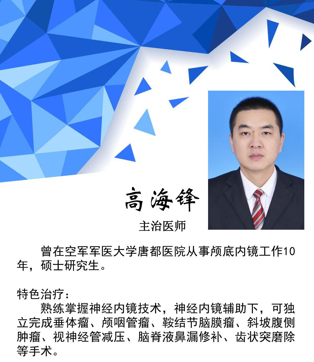 目前,不开颅的神经内镜辅助下经蝶入路微创手术是治疗无功能垂体瘤的主要术式。这种手术利用神经内镜技术可以从鼻孔直接到达我们需要手术的部位,保留垂体的其他部分完好无损,更精准、更安全、术后并发症小。我院神经外科设立有专业的颅底内镜组,开展的神经内镜辅助下经蝶入路微创手术技巧精湛,经验丰富。