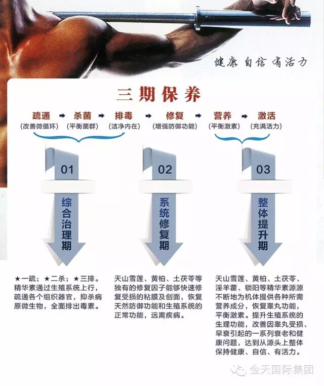 每个使用者都要经过三个阶段第一阶段:综合治理期抑杀病原微生物、全面排出毒素使用3盒,每日3-5片,视毒素量多少酌情增减;一疏: 采用低温活性提取技术,接触身体后药气上行,经粘膜组织、毛细血管、会阴穴直达整个生殖系统的各个组织器官;二杀: 当药气进入身体后利用非抗生素杀菌技术,全面抑杀病原微生物(细菌、病毒、霉菌、原虫等);三排: 天山雪莲花独有的排毒因子,能将毒素包裹并与组织剥离,促进平滑肌节律性收缩,彻底排除各脏器内的毒素。增强新陈代谢彻底排出各脏器内的毒素。此阶段可以消除阴囊潮湿、湿疹、尿频、尿急、尿不尽等症状,能改善前列腺增生、肥大等问题,浑身轻松,心情愉悦,出现晨勃现象,消除局部赘肉,肌肤有光泽。第二阶段:系统修复期使用3盒,每日3-4片,天山雪莲花等独有的修复因子,能够快速修复受损的粘膜及创面、恢复天然防御功能和生殖统的正常功能;此阶段可消除生殖系统带来的各种不适,改善阳痿早泄等问题,提高性功能,和谐性生活,提高机体抵抗力,代谢功能增强,恢复强将身形,增加皮肤滋润度和光泽度,舒缓走皱纹,增强记忆,缓解更年期症状,恢复自信与活力。第三阶段:整体提升期使用4盒,每天2-3片,天山雪莲花、锁阳、肉苁蓉,淫羊藿等精华素源源不断的为机体提供各种所需营养成为,恢复睾丸功能,平衡激素。提升生殖系统的生理功能,改善因睾丸受损、早衰引起的一系列衰老和健康问题,达到从源头上保持健康、自信、有活力。此阶段可使皮肤滋润有光泽,淡化色斑,强简体魄,性功能提升,和谐性生活,增强自信心,保持阳刚、睿智、充满活力,男人味知足。