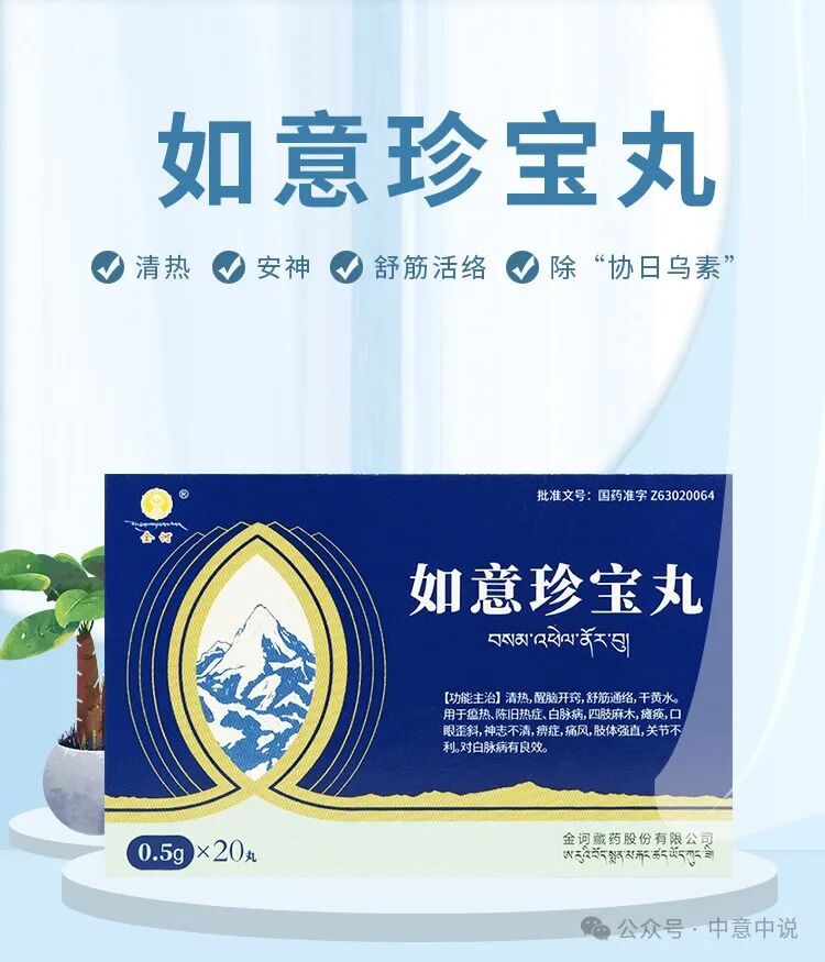·如意珍宝片是一种口服中成药,有清热,醒脑开窍,舒筋通络,干黄水之功效,可有效改善瘟热、陈旧热症、白脉病,四肢麻木,瘫痪,口眼歪斜,神志不清,痹症,痛风,肢体强直,关节不利等症状,对白脉病有良效。