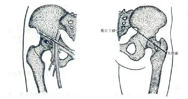 1、大转子前进针法,应防止药液注入血管内或误伤神经(坐骨神经、股神经)。