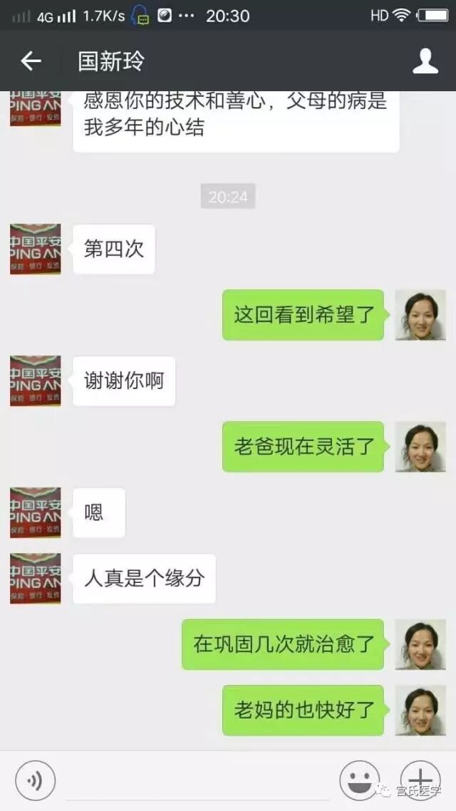 转发内部群魏茂玉主任病例:男70岁 中风后遗症两年半 ,左侧不能自如走路挎筐式,一次高位实像两针左腿走路自如 二次高位实像两针 无变化,三次高位实像两针无变化 今天第四天高位实像两针 左侧上肢基本治愈 总体上细看还有一点后遗症 ,继续治疗观察患者变化分享给朋友们。感恩宫老师。魏老师这个病例是典型的中风后遗症病例,是典型的宫氏病例,因为在传统康复体系里,一般只治疗发病半年以内的病例,而这位老人是两年半了。 这个病例展示的宫氏的另一个特点是疗效快,疗效好,四次治疗,其效果当比传统康复体系四个月的治疗,而且细说起来即使传统康复体系治疗完毕的情况下,宫氏还会再继续起效,这也就是宫氏精英们总结的宫氏脑针疗法对传统康复体系是一个颠覆性的改造。这个病例还同时展示了一个孝敬的子女,对于亲人取得的疗效充满了对魏老师的感激。宫氏不是万能的,但没有宫氏是万万不能的,愿更多的人学好宫氏,治病救人,成人达己。