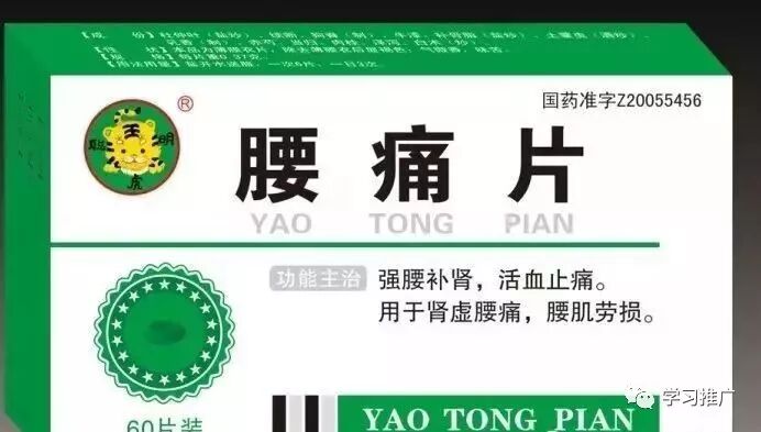 13.腰痛片0.35g*48片/瓶 1次6粒,2-3天量 强腰补肾,活血止痛.用于肾虚腰痛,腰肌劳损.用于治疗椎间盘突出,强直性脊柱炎等以腰痛为主症者.