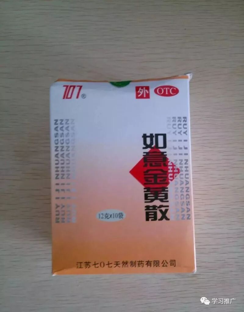 7.如意金黄散10袋 清热解毒,消肿止痛。用于热毒瘀滞肌肤所致疮疖肿痛,症见肌肤红、肿、热、痛,亦可用于跌打损伤。调拌成糊状,摊在风湿膏上外贴患处,熏蒸使用