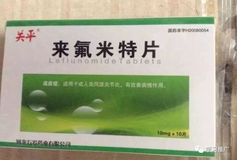 3、来氟米特片10mg*10片 目前最主要用于治疗类风湿关节炎,能改变类风湿关节炎的病程及减轻骨质破坏,是一个具有抗增殖活性的免疫调节剂。成人活动性类风湿性关节炎。来氟米特不仅有免疫抑制作用,还有明显的消炎镇痛作用。每日一次。每次2片。最初三天给予负荷剂量(50mg/日),之后给予维持剂量20mg/天