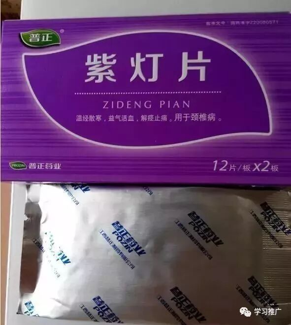 11.紫灯片24片 300盒/件 温经散寒,益气活血,解痉止痛。用于颈椎病所致的颈肩疼痛。主要成份:灯盏细辛、紫丹参、三七、葛根、甘草。用法用量:口服。一次4片,一日3次