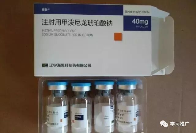 2.注射液甲泼尼龙琥珀酸钠(甲强龙)辽宁海思科40mg 推荐剂量为15~30mg/kg体重,应至少30分钟作静脉注射。根据临床需要,此剂量可在医院内于48小时内每隔4~6小时重复一次