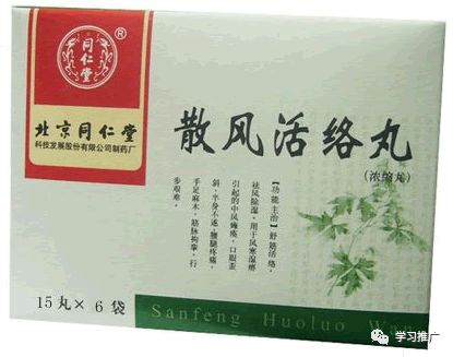 18、散风活络丸30丸*10袋(10-20天量)寒湿阻经络所致的中风瘫痪,半身不遂,腰腿疼痛,手足麻木,筋脉拘挛,行步艰难风湿骨病和中风瘫痪异病同治,部分患者用一天即有周身发热的明显感觉。多用于多年风湿骨病引起严重后果的病人。同仁堂三百年尘封处方挖掘整理最近生产