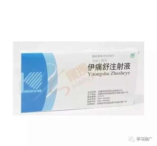 2伊痛舒注射液2ml�本品主要成分细辛、羌活、白芷、当归、独活、川芎、防风.功能主治:祛风散寒胜湿,活血祛瘀镇痛。用于多种原因引起的头痛,牙痛,神经痛,风湿痛及肌纤维炎,骨关节、胃肠、胆、肾疾患、癌症等引起的疼痛。按中医辨证用药,尤其对寒邪和瘀血所致的痛证有较好的效果。肌内注射或穴位注射,一次2~4ml,一日1~2次,小儿酌减