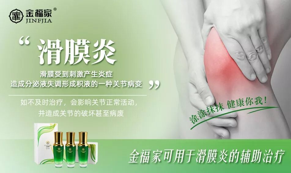 滑膜炎的主要原因是膝盖部位滑膜积液增多导致,目前治疗滑膜炎的首选方法是中医治疗,西药副作用大并且很难根治,需要通过中药的慢慢调理来达到根治的效果。金福家筋骨冷敷凝胶对于滑膜炎有很好的辅助治疗作用,自上市以来反响热烈,好评不断。如果你患有滑膜炎或其他筋骨类疾病,可以尝试使用金福家哦~