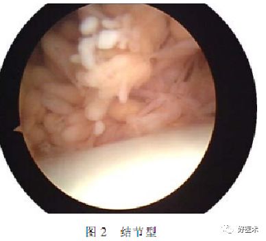由于病变以结节状为主,或绒毛结节状,其结节多数有蒂相连,所以常使关节活动受限,甚至出现交锁或弹响,为此常伴有急性疼痛,然而压痛较局限,肿胀不明显,因此此型膝关节病变,在临床上很难与半月板损伤、膝关节内游离体、髌骨软化症相鉴别。