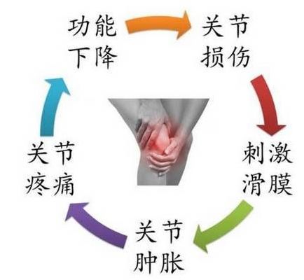 3、晚期:关节肿胀、疼痛比较显著,并伴有积液、骨刺、游离骨。