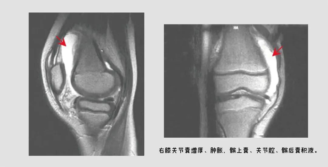 关节内损伤和脱位,有时也可因单纯膝关节滑膜损伤所致,如外伤较轻,或长期慢性膝关节劳损。