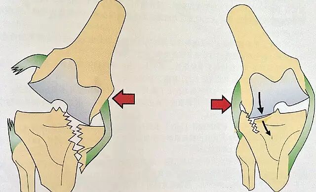 由于骨折复位不完全,造成关节软骨面不平整,从而产生创伤性关节炎;