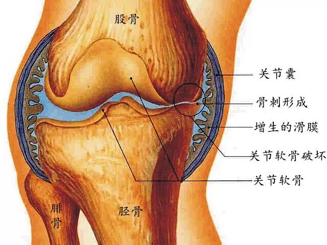 膝关节滑膜炎,在老年人多继发于膝关节骨关节炎,主要是因软骨退变与骨质增生(骨刺)产生的机械性生物化学性刺激,继发膝关节滑膜水肿、渗出和积液等。
