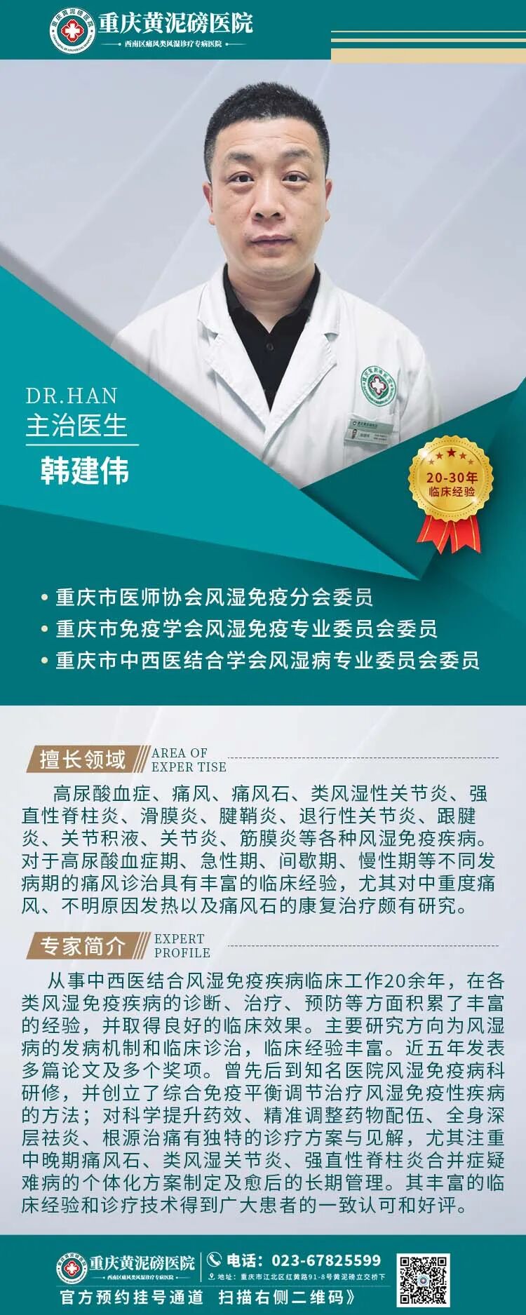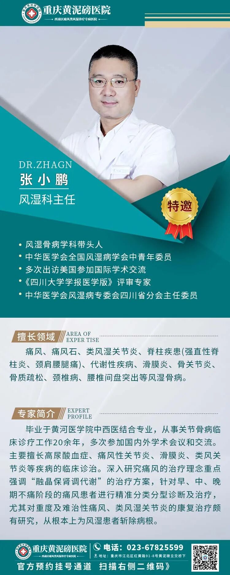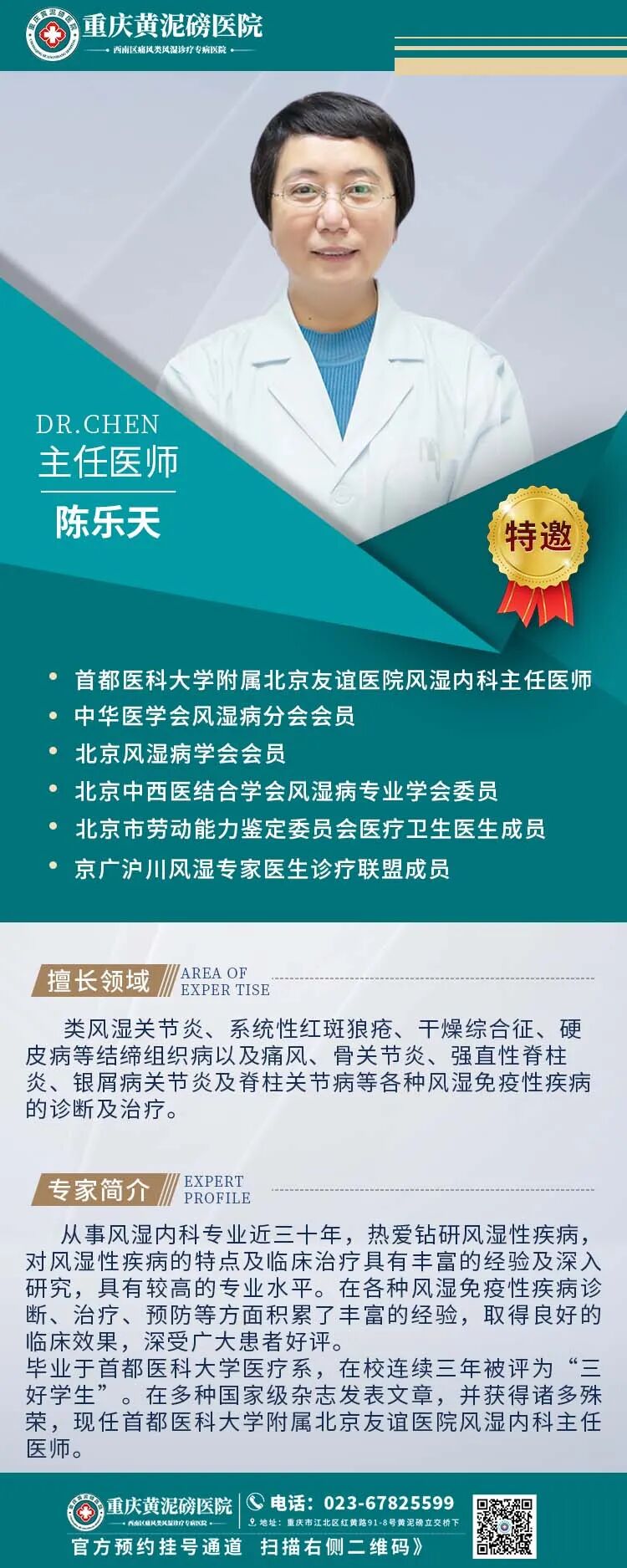 ·以京、渝、湘、浙等多家知名三甲医院的风湿免疫疾病专家、教授为风湿免疫疾病学科带头人。