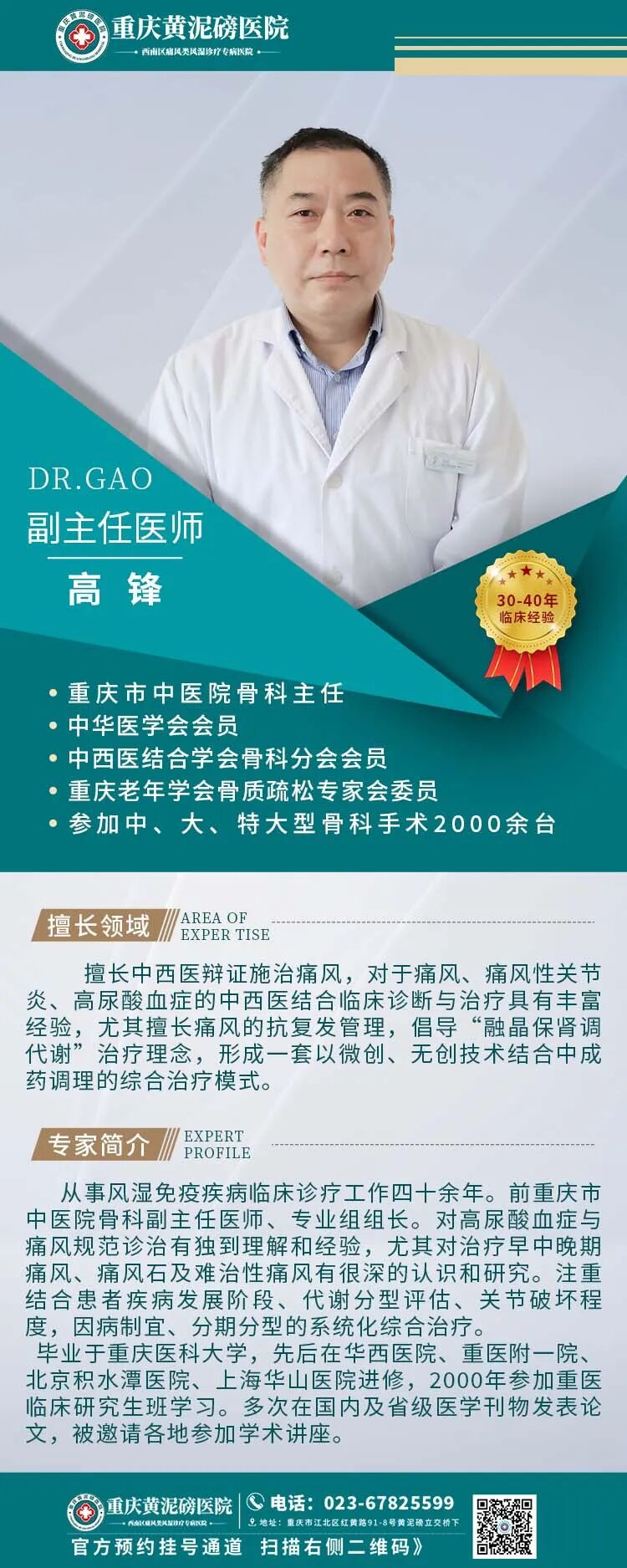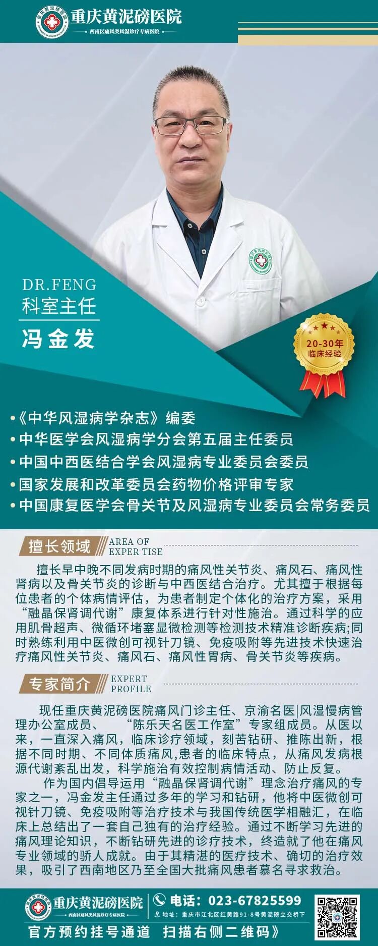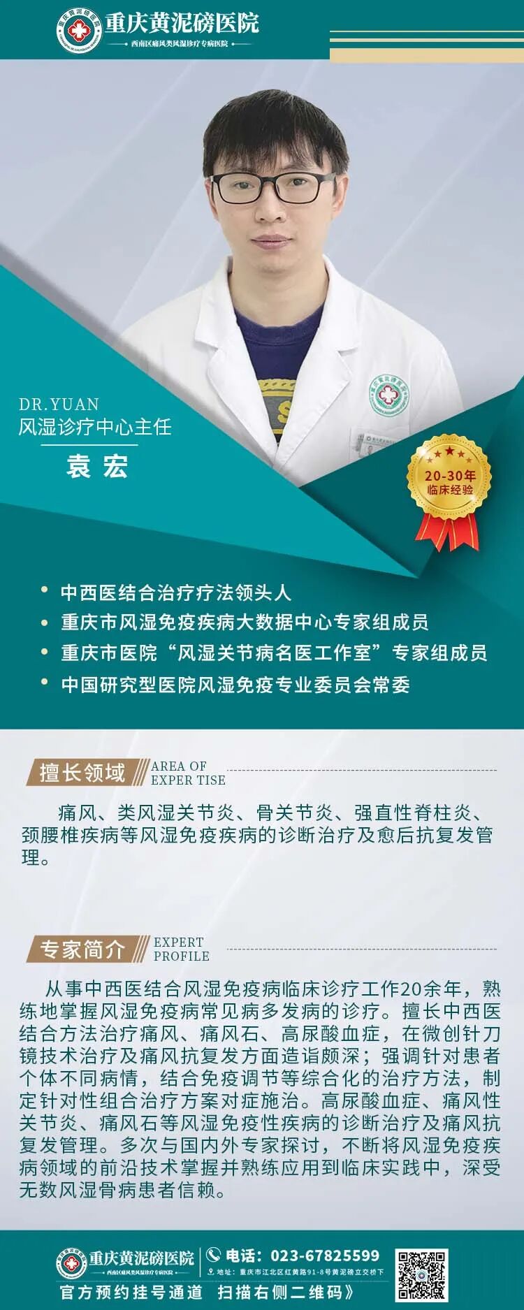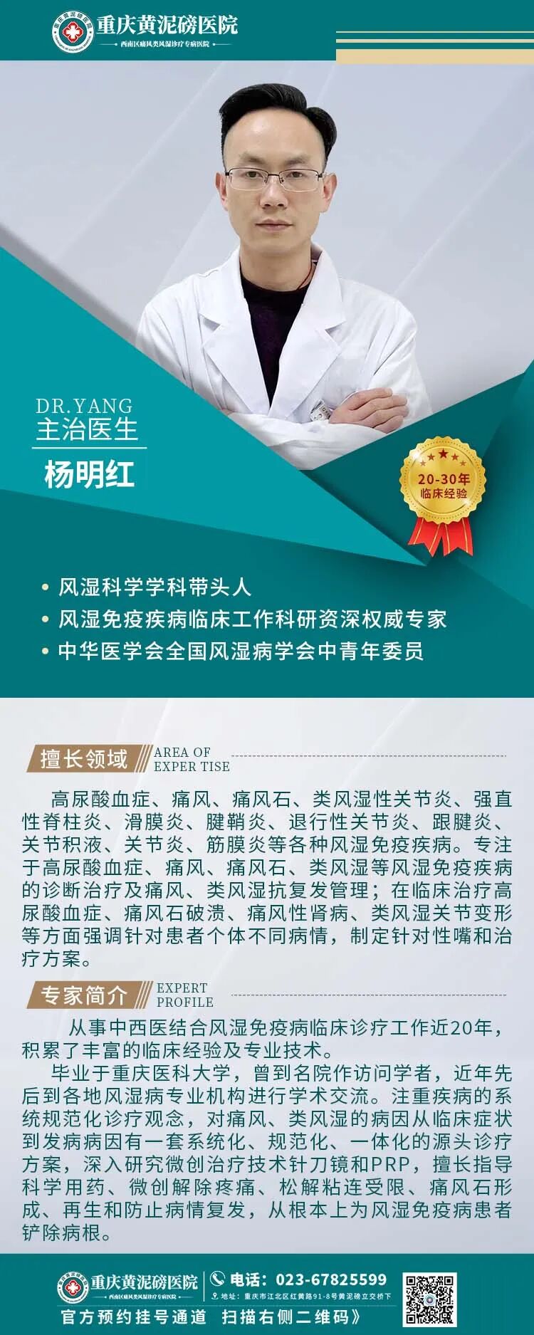 ·以京、渝、湘、浙等多家知名三甲医院的风湿免疫疾病专家、教授为风湿免疫疾病学科带头人。