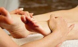 坐在椅上,双膝屈曲,双腿微分,将两手的虎口分别放在一侧膝盖的内外侧,然后拇指与其余四指对合用力,沿小腿内、外侧做直线的指推动作尽量至足踝。反复指推10—20次,然后换腿重复此动作。