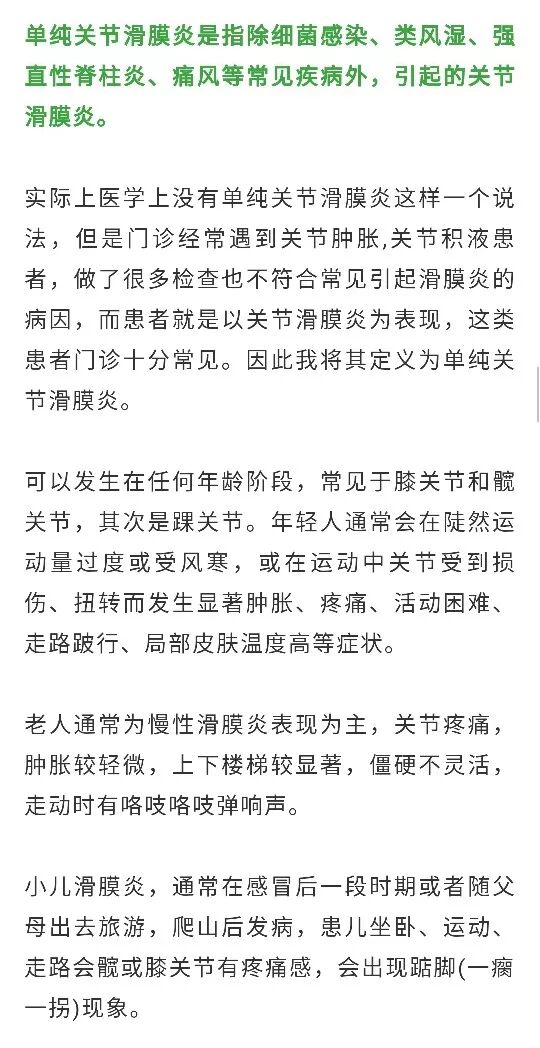 单纯关节滑膜炎