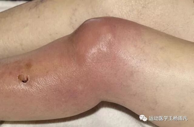 关节积液量非常大,整个关节肿胀十分明显,胀感难以忍受