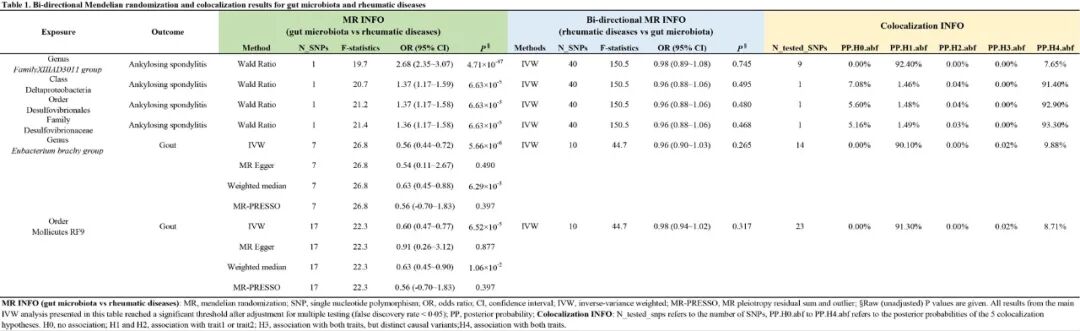肠道微生物群和风湿病的双向孟德尔随机化和共定位结果