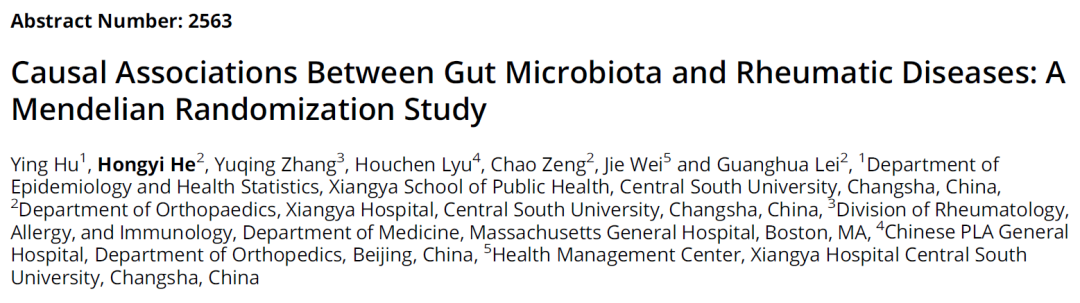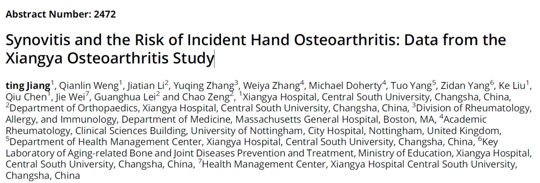 2023ACR速递滑膜炎与手骨关节炎、肠道菌群与风湿病之间的关系—来自中南大学湘雅医院的研究