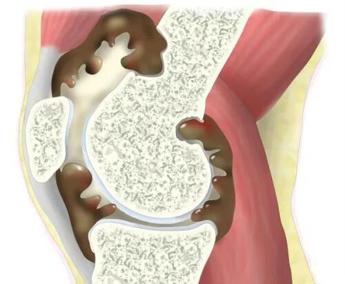 关节肿胀、疼痛比较显著,并伴有积液、骨刺、游离骨。